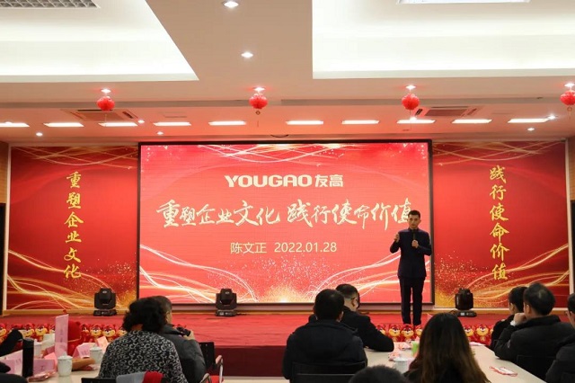 1月28日,合肥友高“重塑企業(yè)文化,踐行使命價值”戰(zhàn)略發(fā)布會暨新春年會在友高多媒體會議中心隆重舉行。在戰(zhàn)略發(fā)布會上,合肥友高董事長陳文正詳細闡述了2022友高發(fā)展目標,業(yè)務支撐等,友高全體家人與參會嘉賓共同見證公司發(fā)展史上這一重要時刻!