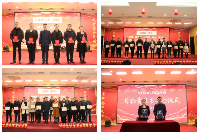 在本次發(fā)布會上,還進行了友高公司新任總監(jiān)、經(jīng)理、主管的人員任命,經(jīng)理級以上人員與公司簽訂了目標責任書。“千斤重擔大家挑”,目標責任書的簽訂,承載著一份責任與期盼,也明確了2022的工作方向與目標,為公司的穩(wěn)定發(fā)展奠定良好基礎!
