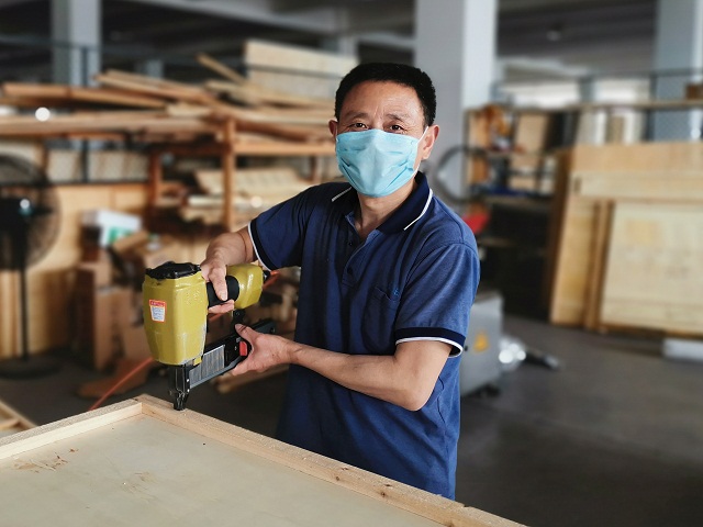 藺師傅為出去的每一臺(tái)機(jī)器裝箱打包,并在箱體上標(biāo)明箱內(nèi)產(chǎn)品型號(hào)。采用這種整箱運(yùn)輸?shù)姆绞?,機(jī)器、配件都能安全的運(yùn)輸?shù)娇蛻艄S。