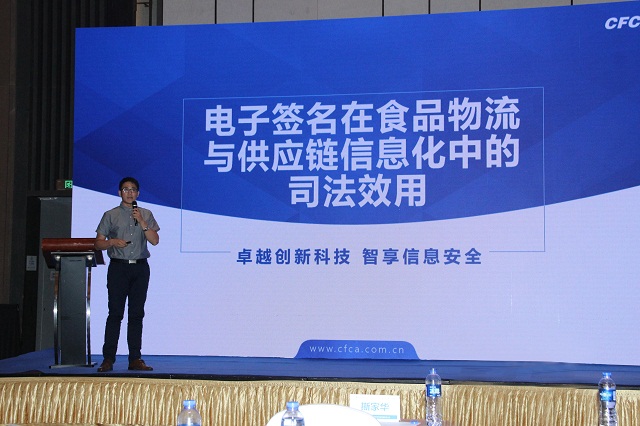 來自中國金融認證中心產(chǎn)品方案總監(jiān)孫志峰先生現(xiàn)場分享了《電子簽名在食品物流與供應鏈信息化中的司法效用》的主題內(nèi)容,分享了電子簽名的業(yè)務與司法、私鑰控制以及電子簽章方案的整體架構等。