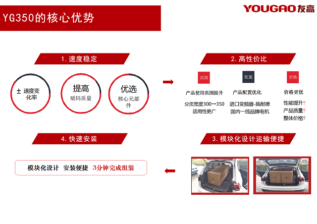合肥友高緊緊抓住分頁機(jī)的痛點(diǎn),并針對(duì)分頁機(jī)進(jìn)行革新,以期為客戶更好的服務(wù)。對(duì)于此,合肥友高進(jìn)行產(chǎn)品升級(jí),YG350應(yīng)運(yùn)而生。