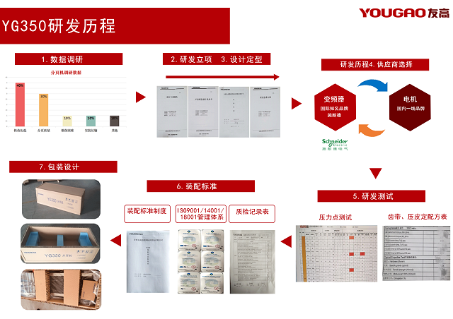 YG350經(jīng)過了前期多項(xiàng)調(diào)研,從數(shù)據(jù)調(diào)研,研發(fā)立項(xiàng),設(shè)計(jì)定型等方面進(jìn)行研發(fā),真正為客戶解決痛點(diǎn)問題。