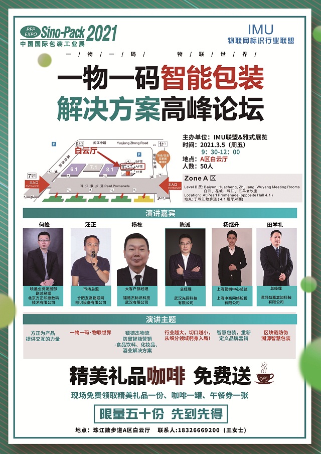 展會(huì)同期,IMU聯(lián)盟論壇活動(dòng)也將開啟,合肥友高物聯(lián)網(wǎng)標(biāo)識(shí)設(shè)備有限公司作為IMU物聯(lián)網(wǎng)標(biāo)識(shí)行業(yè)聯(lián)盟理事長單位、秘書長單位,攜手雅式展覽公司共同舉辦“一物一碼智能包裝解決方案高峰論壇”,同時(shí),友高也將參與本次論壇主題演講。屆時(shí)物聯(lián)網(wǎng)標(biāo)識(shí)行業(yè)大咖將群聚廣州,開啟一場“一物一碼智能包裝解決方案”的頭腦風(fēng)暴,勢(shì)必引爆花城!