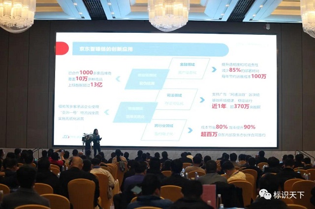 京東數(shù)字科技集團產(chǎn)品經(jīng)理余希彧女士以《京東區(qū)塊鏈追溯創(chuàng)新與應用實踐》為主題,從京東智臻鏈在產(chǎn)品溯源、營銷等方面的應用進行了細致解析,包括涉及到的物聯(lián)網(wǎng)數(shù)據(jù)采集、自動化賦碼方案、流通及檢測數(shù)據(jù)對接、圖文及直播等消費者觸達、竄貨及逆向售后管理等等,并以“精準扶貧跑步雞”為案例,闡述了溯源鏈的整個全過程。