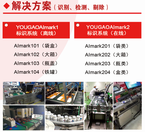 友高爆品AImark智能標識系統(tǒng)針對不同產品的包裝形式、生產線(離線/在線)都做了細分,為每個需要做生產日期檢測的企業(yè)提供最全面的解決方案。