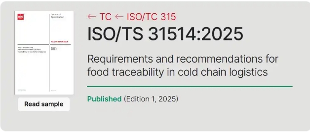 2025年11月4日,由中國聯(lián)合新加坡共同牽頭制定的《冷鏈物流中食品可追溯性的要求和建議》(ISO/TS 31514:2025)正式由國際標(biāo)準(zhǔn)化組織(ISO)發(fā)布。
